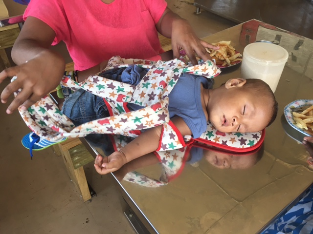 Die Kinder schliefen auf dem Tisch und die Temperatur war im wärmeren Bereich – aber das Essen war ausgezeichnet (Im Gegensatz zu den Fijianern verstehen die Inder etwas vom Würzen).