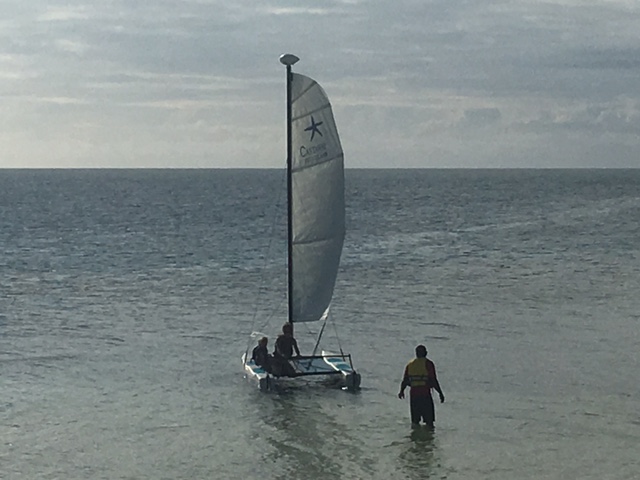 Heute sind wir endlich in der Südsee gesegelt! Wir haben 30 Minuten auf dem HobbieCat des Resorts die Südsee aufgemischt. Es hatte Wind, sie liessen uns alleine raus und wir kamen auch wieder zurück ;-). Der Cat ist ein einfaches Boot für 4 Personen ohne Schwert und nur Grosssegel, also äusserst bequem zu manöverieren. Das war so gut, dass wir ihn am Nachmittag bei etwas mehr Wind nochmals ausführten.