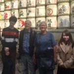 Aber klar doch und los ging es. Sie machten es recht gut, zeigten uns das korrekte rituelle Waschen vor dem Betreten des Schreins und wie man richtig um die Erfüllung von Wünschen bittet. Es war unterhaltsam und machte Spass, sich über die Beobachtungen der anderen Kultur auszutauschen, ich glaube, sie haben es auch genossen. Zum Abschluss noch ein Gruppenfoto vor den Sakefässern.