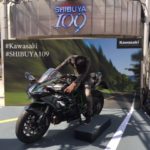 Bei der Begutachtung der Einkaufstempel haben wir noch eine private Vorführung der neuen, trendigsten Hygienemasken bekommen und draussen konnte man sich auf die neusten Boliden von Kawasaki setzen.