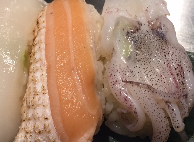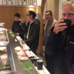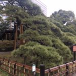 Also Schuhe wieder anziehen und durch den Blumengarten zur 300 Jahre alten Pinie, dann weiter Richtung Shimbashi-Bahnhof und fanden die Sushi-Stehbar, wo wir uns eine Linie Fisch mit Klebreis reinzogen.