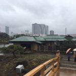 Es regnete heute den ganzen Tag. Gegen Mittag machten wir uns auf und besuchten ein Cafe in der Nähe mit praktischen Kommunikationshilfen, z. B. zur Bestimmung der gewünschten Bechergrössen. Weiter ging es zum Hama-Rikyu Garten, der an die Tokyobucht grenzt.