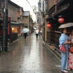 Regnerischer Reisetag heute. Zuerst mit dem “Limited Express” auf der einspurigen Strecke Richtung Nagoya. Kurz vor dem Umsteigeort hatten wir uns zusammen mit einem älteren australischen Paar, das nach Tokyo reiste, vor der Türe bereit gemacht, um schnell auf den Shinkansen, unserer nach Kyoto, umsteigen zu können. Fünf Minuten vor der geplanten Ankunft kam der Schaffner vorbei und stammelte etwas von “tennn mimutes delaayi”. Mischt, diesmal hatten wir unser eigenes Abteil reserviert und nun verpassen wir den Zug. Wir fragten den Schaffner, was wir denn mit den Reservationen nachen sollen und er zog eine Brieftasche heraus, klappte sie auf und eine Plastikzeigetasche öffnete sich, die sicher 15 japanische Sätze und deren englische Übersetzungen zeigte. Er zeigte auf den Satz, der uns mitteilte, dass wir das Ticket an einem entsprechenden Gate umtauschen sollten. Be prepared! In Nagoya war der Bahnhof ziemlich voll und wir beschlossen, direkt zum Gleis zu gehen und dort den nächsten Shinkansen nach Kyoto zu nehmen, was auch gut klappte und 45 Minuten später waren wir in der alten Kaiserstadt. Die Aussicht unterwegs war eher trist, das war auch schon von Tokyo bis Naguya so, praktisch alles mit unattraktiven Bauten zugepflastert. Das beste war, dass der Zug so schnell daran vorüber fuhr!