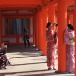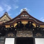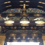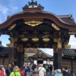 Nach kurzem Spaziergang bei kühlem und windigem Wetter, gelangten wir heute Morgen zum Schloss Nijo-jo-mae, das zum Weltkulturerbe (WKE) zählt und 1603 vom damaligen Shogun errichtet wurde. Prachtvolle Tore, schöne Wandmalereien und ein gepflegter Garten waren zu bestaunen. Mit den Papierfenstern gab es in den Räumen ein diffuses Licht, das eine spezielle Ambiance schuf. Es war lustig zu sehen, wie sich hunderte von Touris, die Mehrheit Japaner, in Socken über das “Nachtigallen-Parkett” (es erzeugt bei jedem Schritt entsprechende Töne) schlurften.