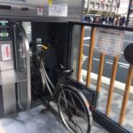 Vor dem Bahnhof, nahe der Raucherzone, entdeckte ich die vollautomatische Velogarage. Man stellt das Velo in die Spur vor der Tür, drückt den Knopf, das Gefährt wird eingezogen, nach unten transportiert und irgendwo deponiert. Der ganze Ablauf dauerte höchstens 20 Sekunden. Wie das Velo identifiert wird und ob man wieder seinen Stuhl bekommt, habe ich nicht rausgefunden.