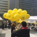 Daneben noch eine Gedenkveranstaltung mit gelben Ballonen für die 304 meist jugendlichen Opfer der Fähre Sewol, deren Untergang sich vor 1000 Tagen ereignete und die Urache und Schuldfrage inmer noch nicht geklärt seien.