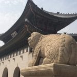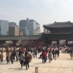 Erleichtert ging es Richtiung Gyeongbokgung Palast. Unterwegs beobachteten wir, wie Tausende von Polizisten mit Bussen stationiert wurden, unser Hotel natürlich im Brennpunkt, und Präsenz markierten. Grund waren Wahlveranstaltungen der Parteien, die gleichzeitig in der Innenstadt stattfanden.