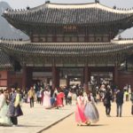 Dann noch eine Runde im Garten des Gyeongbokgung Palasts, der sehr gut besucht war und einmal mehr hunderte von Personen in Trachten und Selfie-Sticks anzog.