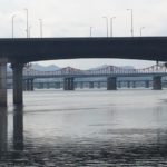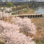 Danach wanderten wir, zum Teil unter Kirschblüten, dem Fluss entlang bis zur Mündung in den Hangang, der Hauptfluss, der durch Seoul fliesst.