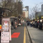Zurück in “unserer Umgebung”, durch die Shoppingmeile Insedong und an den Strassenständen vorbei zur Kreuzung, wo wir einmal mehr die 14-spurige Hauptachse zwischen Nord- und Südtor überqueren.