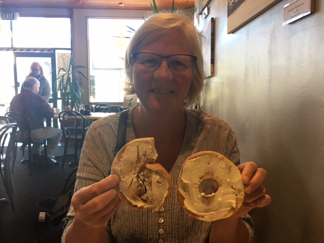 Bei bestem Wetter fuhren wir weiter südwärts zu unserem ersten Halt in Hokitika, wo es auch ein Zmorge für das Geburtstagskind gab. Unterwegs erlebten wir den pragmatischen Ansatz der Kiwis: die Brücke wird für Auto und Bahn geteilt!